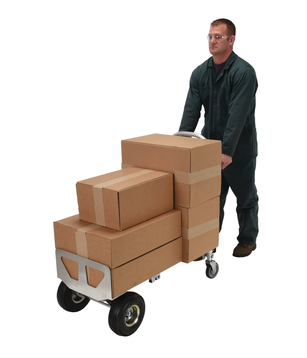 The deluxe Aluminum Hand Truck converts from hand truck to platform truck to maximize control for different types of loads. This hand/platform truck can transport boxes wherever they are needed. Transport loads smoothly and evenly over rough or uneven floors.