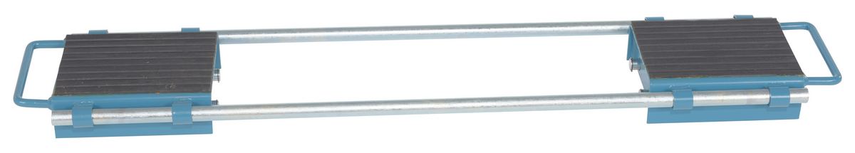 Steel Adjustable Machinery Skates 10-1/2 In. x 12-13/16 In. x 4-3/8 In. 6 Ton Capacity BlueThese machinery skates are designed to move heavy equipment and machinery. Nylon wheels are strong and will not mark floors. The top of each skate includes a rubber surface for extra grip. Steel construction with handle to carry and position. The adjustable skate includes two (2) dollies connected with a two (2) slider bars to form one larger dolly. Slider bar allows for adjustable overall dolly width. Designed primarily for moving in straight lines.