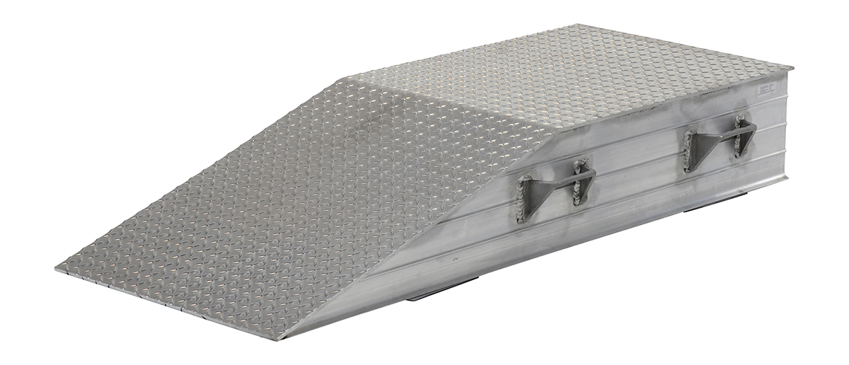 Elevate semi-trailers to loading docks for maximum serviceability during loading and unloading operations. Manufactured from heavy-duty aluminum tread plate for positive traction. All welded aluminum construction. 30,000 lbs. uniform capacity per pair (1/4" thick material). Wheel risers are designed to raise the trailer for secure loading and unloading.