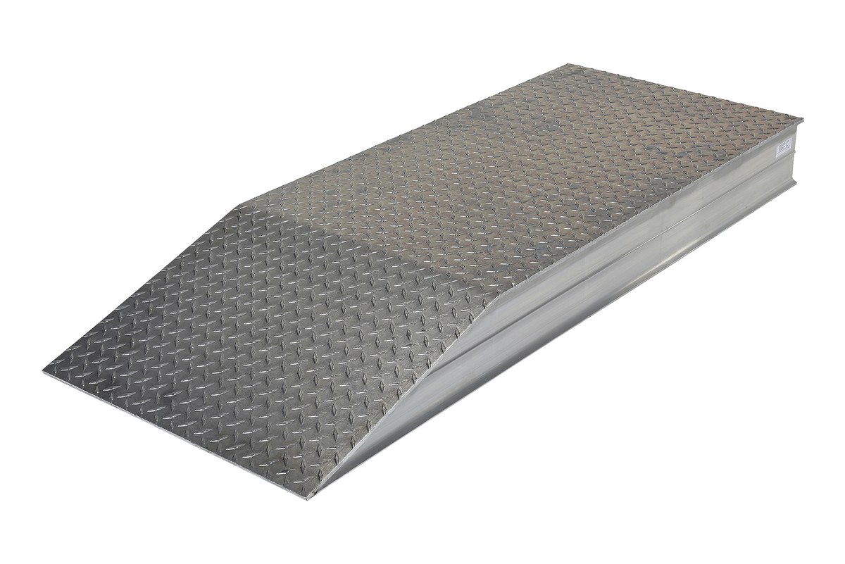 Elevate semi-trailers to loading docks for maximum serviceability during loading and unloading operations. Manufactured from heavy-duty aluminum tread plate for positive traction. All welded aluminum construction. 30,000 lbs. uniform capacity per pair (1/4" thick material). Wheel risers are designed to raise the trailer for secure loading and unloading.
