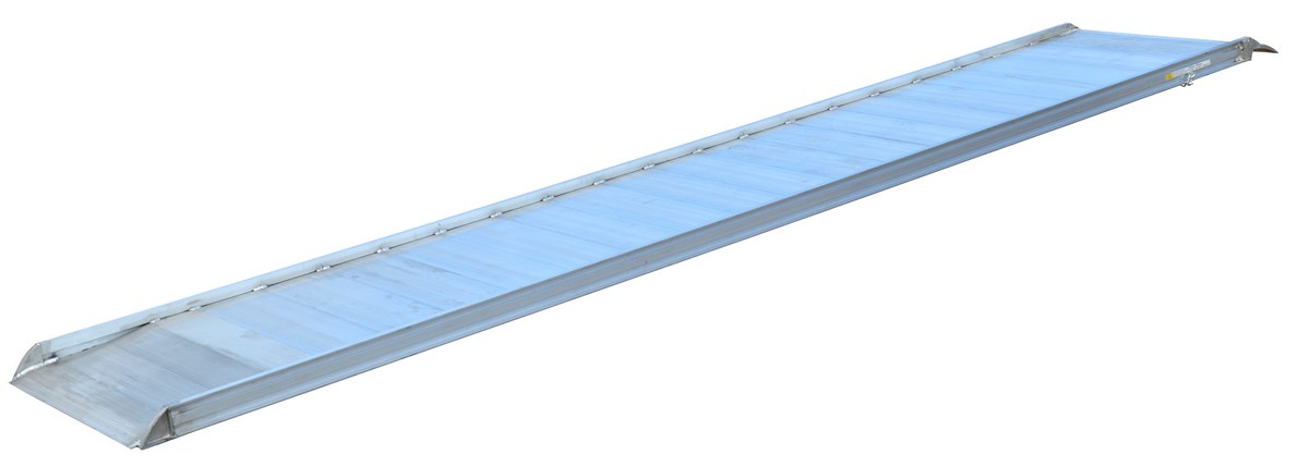 The Aluminum Walk Ramp enables delivery men/women, shippers, and receivers to load and unload trucks when docks are unavailable. Heavy-duty steel chains with steel grab hooks are attached to each side of ramp for safely securing ramp to truck. Constructed of strong aluminum alloy with non-skid tread surface. The ramp is lightweight and easy to handle. This overlapping style rests on the truck bed.