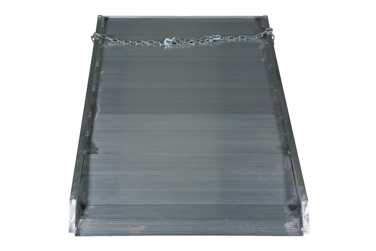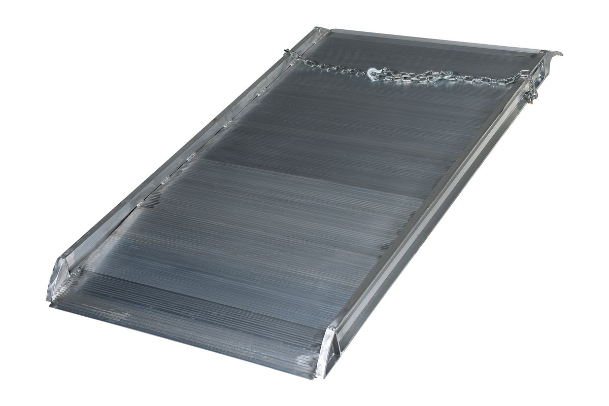 The Aluminum Walk Ramp enables delivery men/women, shippers, and receivers to load and unload trucks when docks are unavailable. Heavy-duty steel chains with steel grab hooks are attached to each side of ramp for safely securing ramp to truck. Constructed of strong aluminum alloy with non-skid tread surface. The ramp is lightweight and easy to handle. This overlapping style rests on the truck bed.