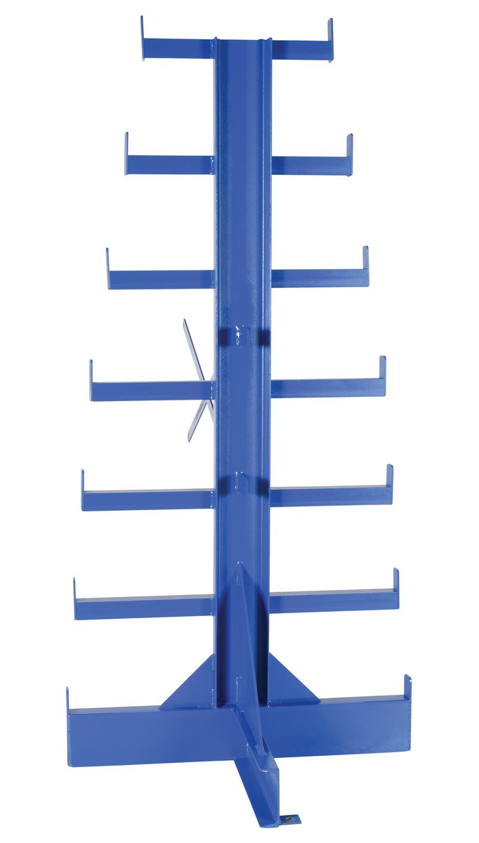 Steel Bar Stock Tree Add On Double Sided 38-1/2 In. x 62 In. x 80-1/2 In. 500 Lb. Capacity BlueThe dual sided bar stock tree add-on unit consists of one (1) upright and one(1) set of cross braces for joining to the starter set. This unit increases storage room when it is put in place. Arms vary in length.