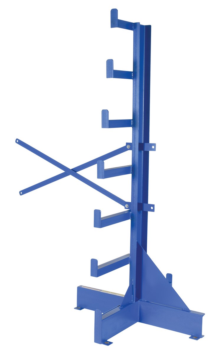 The single sided bar stock tree add-on unit consists of one (1) upright and one (1) set of cross braces for joining to the starter set. This unit increases storage room when it is put in place. Arms vary in length.