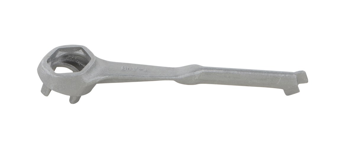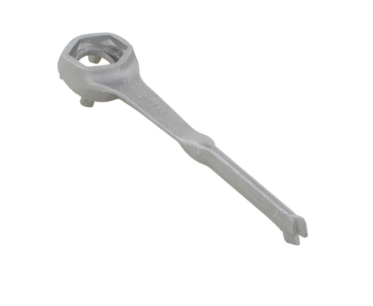 This multipurpose, single ended, cast aluminum drum Bung nut wrench not only opens and closes drum bungs or plugs, they also work as a bung wrench, ring wrench and faucet wrench all in one! These durable wrenches will not bend, break or chip. Eliminate the need for extra tools with these multi functional drum wrenches! Patent pending.
