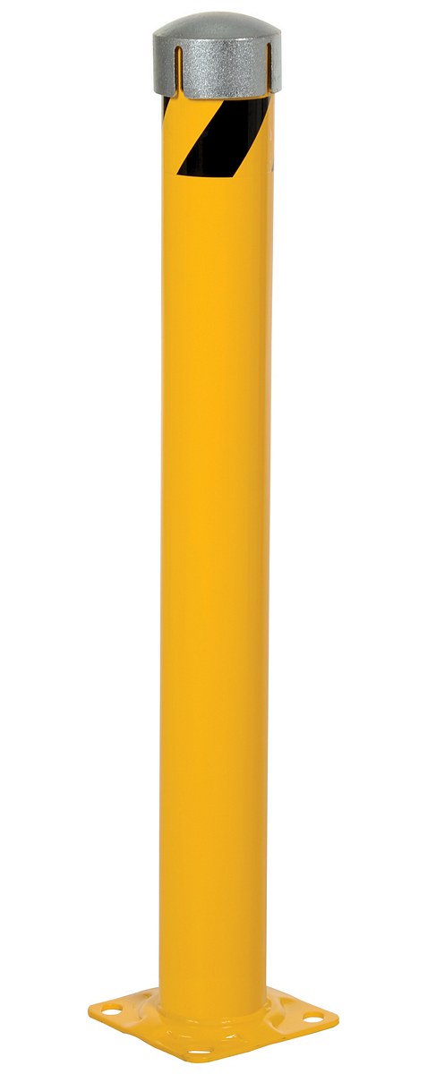 Steel Pipe Bollard with Removable Bolt-On Steel Cap and Slots 42 In. x 4-1/2 In. Yellow