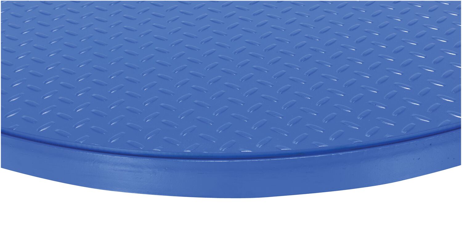Steel 60 In. Carousel, 4K Capacity, Round Tread Top Plate BlueThis manual carousel rotates material with the assistance of an operator. Now, loading and unloading operations can be done more efficiently minimizing fatigue and risk of back injury. The carousel may be added to an existing work bench, scissor table, or simply placed on the floor. A steel constructed top plate is included with the carousel for enhanced stability during use.