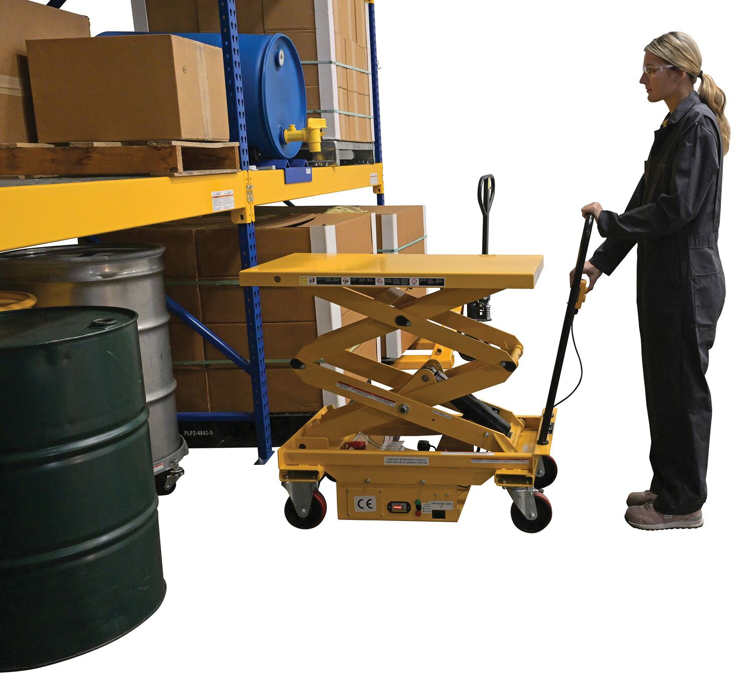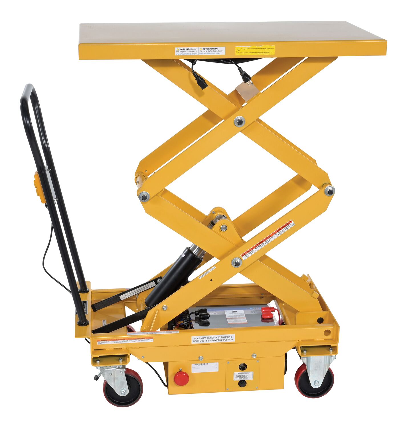 Steel DC Powered Hydraulic Double Scissor Cart 20-1/2 In. x 39-3/4 In. 1000 Lb. Capacity Yellow