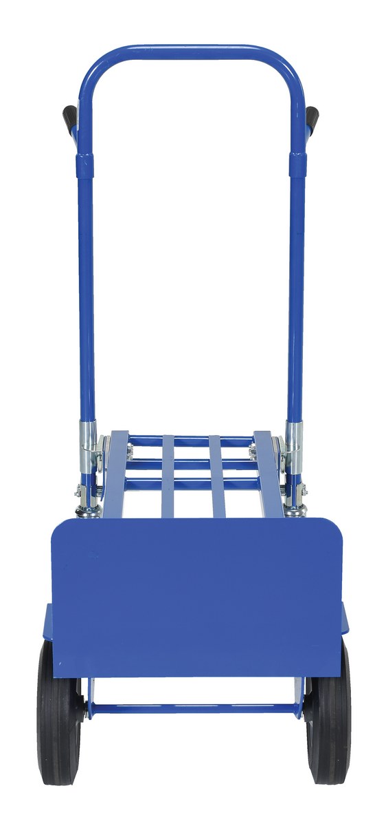 Steel Convertible Hand Truck 20 In. x 19-1/2 In. x 58-184 In. 500 Lb. Capacity BlueThe steel convertible Hand Truck is a versatile wonder. This hand truck can work in both the vertical and horizontal positions. The task of transporting smaller crates or long narrow boxes is now simplified. Hand truck rolls smoothly on casters.
