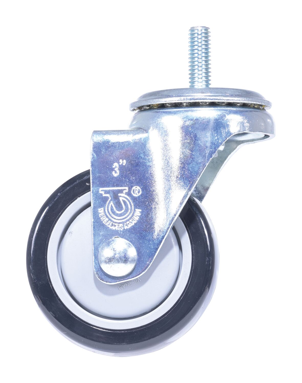 Polyurethane/Polyolefin Swivel Caster 3 Inch Diameter x 1-1/4 Inch Width 300 Lb. Capacity Black/GrayPolyurethane/Polyolefin casters are great for a variety of industries with their limited rolling resistance and ability to withstand rough environments. The construction is non-staining and corrosion resistant to a variety of outside substances. Swivel design allows the user to maneuver and change directions instantaneously. Wheel core is constructed of Polyurethane/Polyolefin.