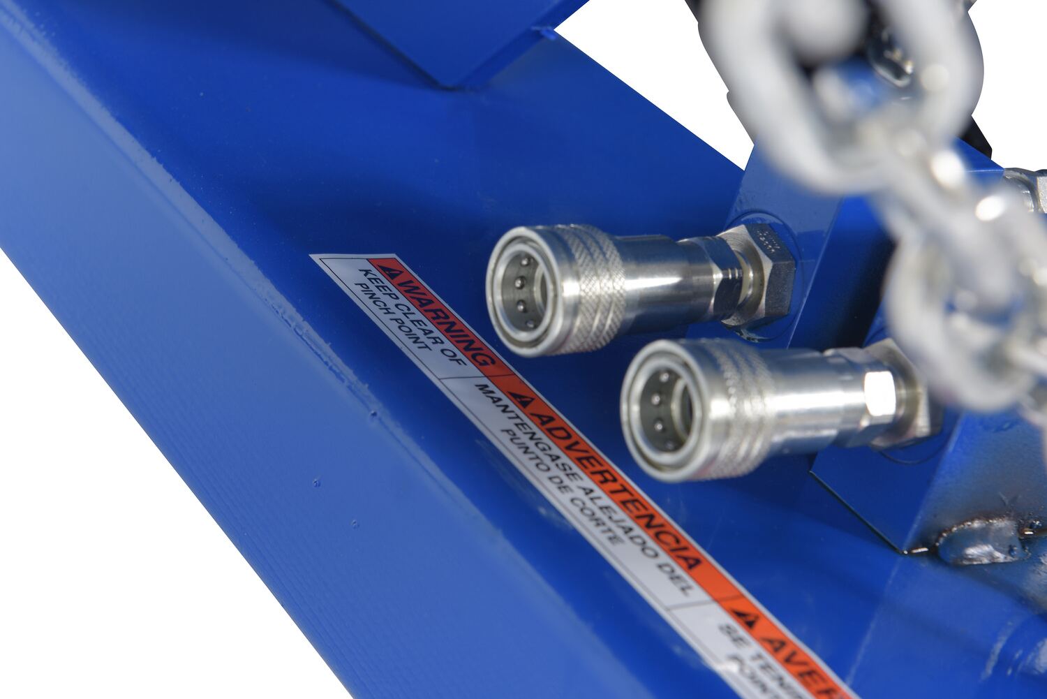 Steel Heavy Duty Hydraulic Dumping Hopper 3 Cubic Yard 6,000 Lb. Capacity BlueA hydraulic dumping hopper minimizes manual labor, while keeping workers safe. The hydraulic system is simply connected to a fork lift by using the hydraulic hose hookup. Utilizing the forklift levers, the hopper is activated to be dumped, as well as returned to its upright and locked position. The unit is constructed of 8 gauge steel with a powder coat finish. Optional casters are available for quick movement between workstations.