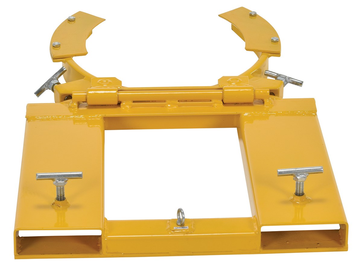 The drum gripper makes it easy to pick up steel and plastic drums (with top ring or top ridge) without leaving the seat of the fork truck. Simply slip the forks into the fork tubes and the drum gripper is ready to go. The adjustable width arms systems grips the drum tightly, and then lifted into the air. Drum is automatically released by lowering the forks. All models feature hinged folding design for storage. The unit is constructed of powder coated welded steel for strength and durability throughout daily use. Safety restraint included.