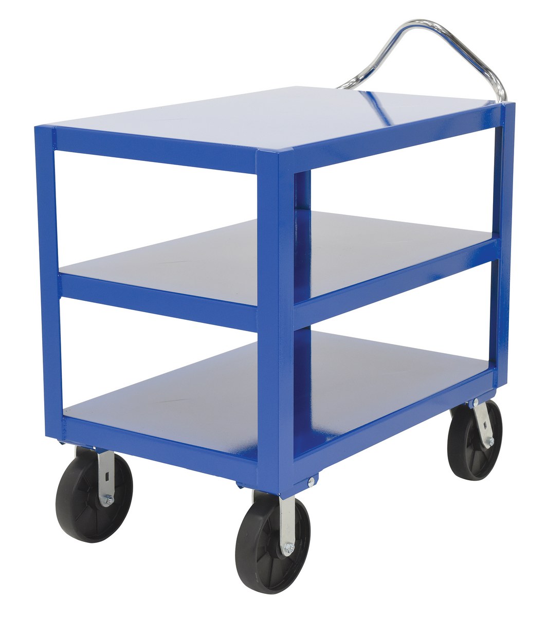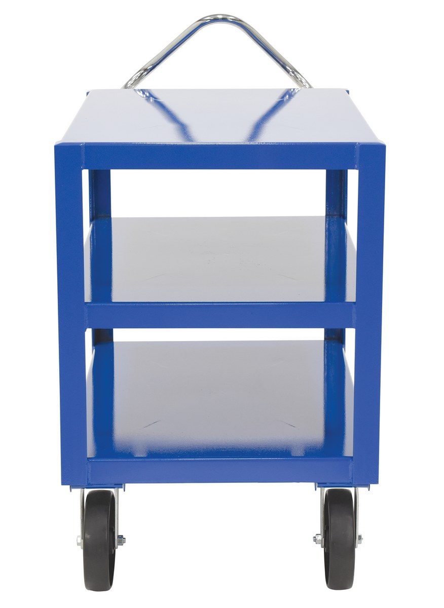 Steel 24 In. x 36 In. Platform Heavy Duty 3 Shelf Ergo Handle Cart with GFN Casters 4000 Lb. Capacity Blue