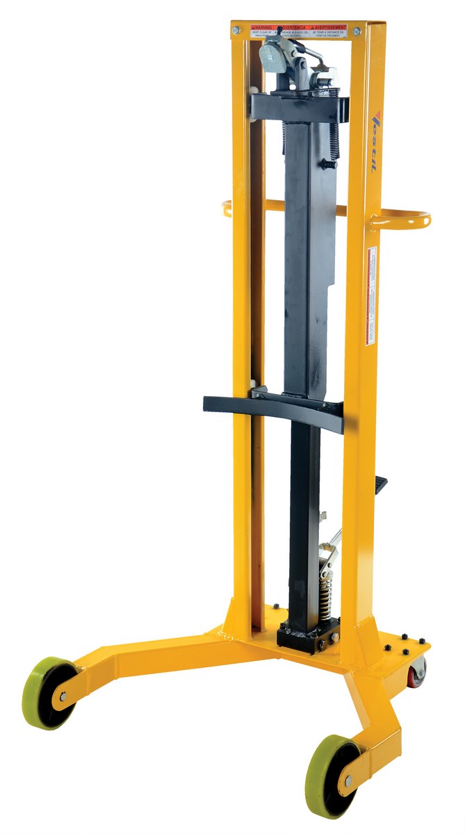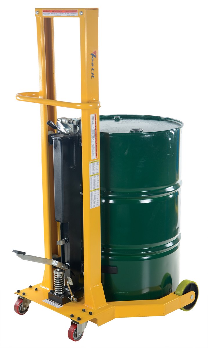This drum jack is the perfect solution to any of your drum transporting needs. Compact design allows for maximum maneuverability in restrictive areas. Accepts drums with a top lip. Includes rigid and swivel casters for portability, manual hydraulic foot pump to raise and lower the drum.