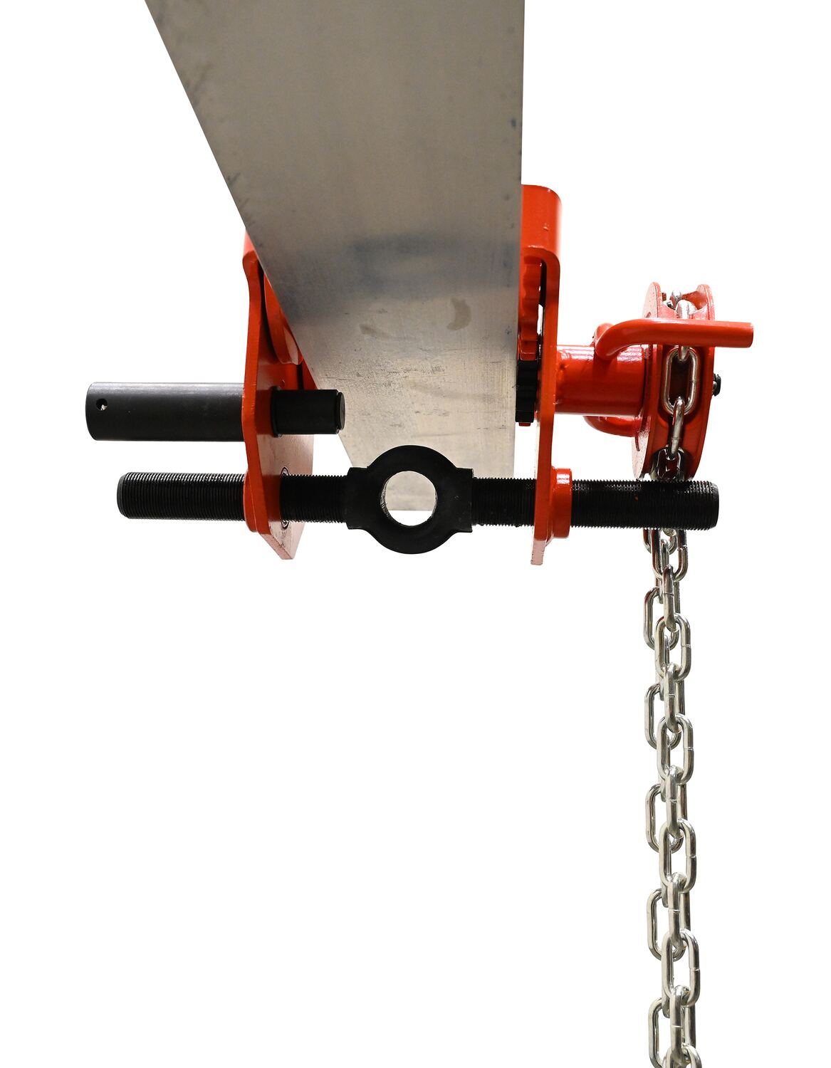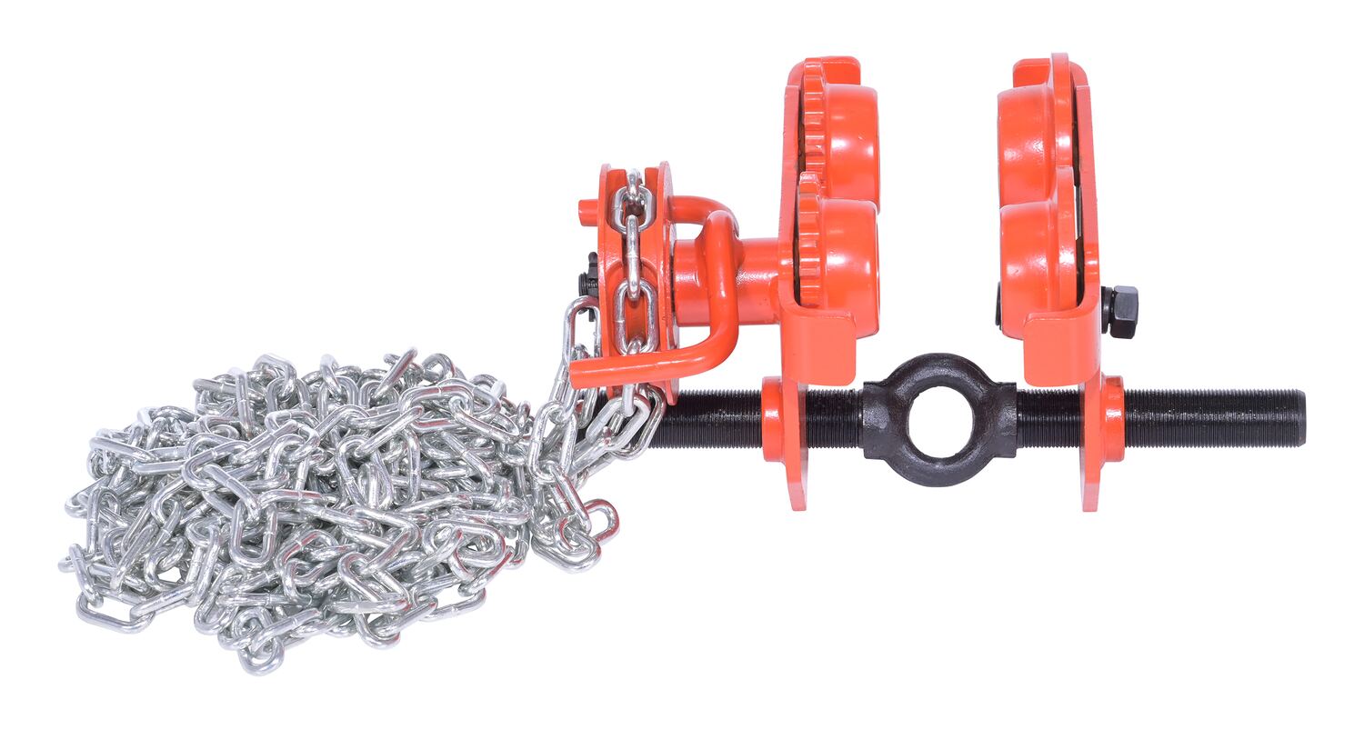 This low profile manual trolley has been designed to quickly install on virtually any S, H, W and M type I-beam. The width of the trolley is adjusted by rotating the center rod with lifting eye clockwise or counterclockwise. Once the hoist (not included) is attached, the center rod cannot be rotated which prevents the trolley width from accidentally changing. This geared trolley is ideal for when precise positioning of the trolley is required. It includes four (4) rollers with sealed bearings for long life. A lifting eye is located at the bottom of the trolley for attaching a hoist (not included). The trolley features steel construction and a painted finish.