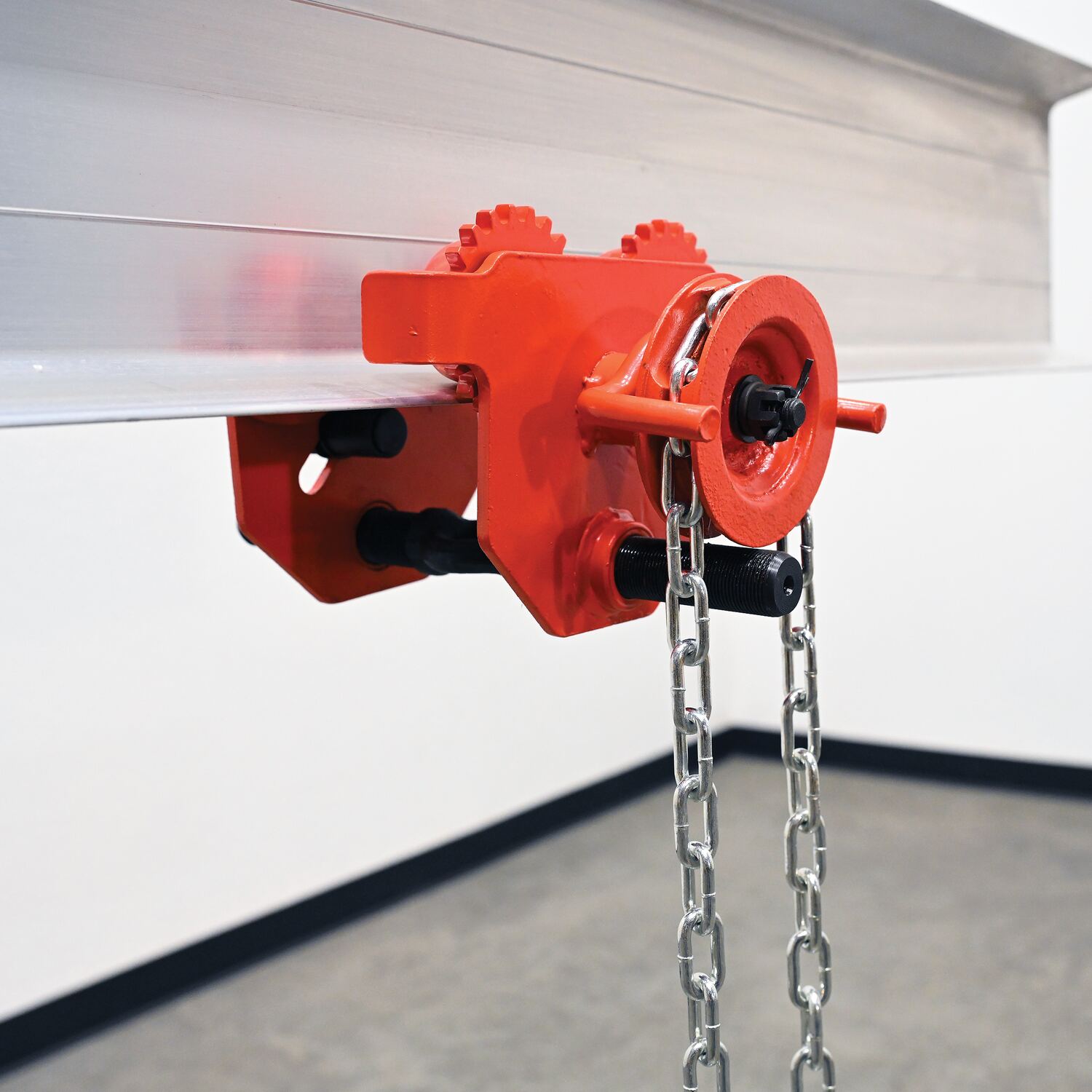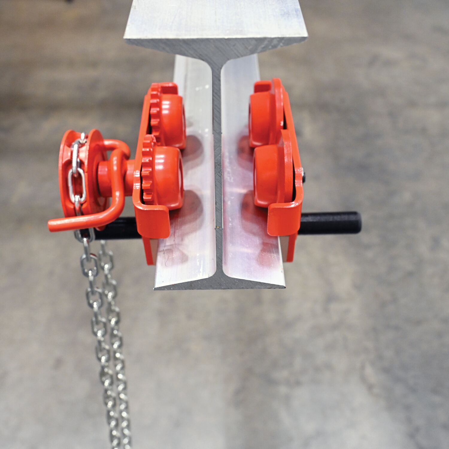 Steel Geared Eye Manual Trolley 1000 Lb. Capacity Orange