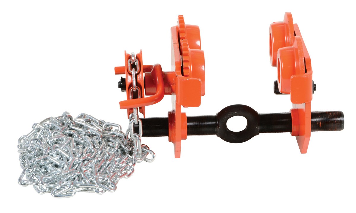 This low profile manual trolley has been designed to quickly install on virtually any S, H, W and M type I-beam. The width of the trolley is adjusted by rotating the center rod with lifting eye clockwise or counterclockwise. Once the hoist (not included) is attached, the center rod cannot be rotated which prevents the trolley width from accidentally changing. This geared trolley is ideal for when precise positioning of the trolley is required. It includes four (4) rollers with sealed bearings for long life. A lifting eye is located at the bottom of the trolley for attaching a hoist (not included). The trolley features steel construction and a painted finish.