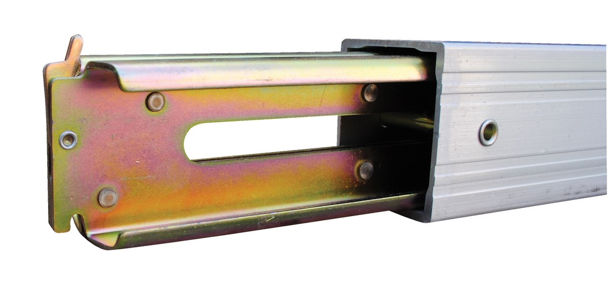The e-track for the cargo bar keeps trailer contents in place to eliminate damaged goods. It has a simple mechanical lock that will not vibrate loose. It is constructed of square tubing with a wall construction that is lightweight yet extremely strong. Square articulating steel end plates feature pads for positive gripping action. The bars have end plates and fit between trailer walls.