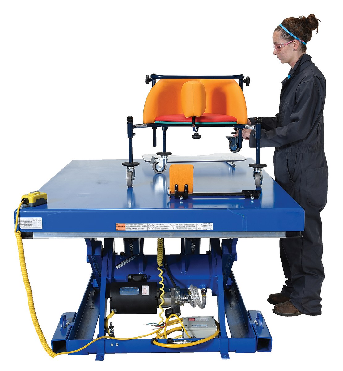 Steel Electric Hydraulic Lift Table 48 In. x 72 In. 6000 Lb. Capacity Blue