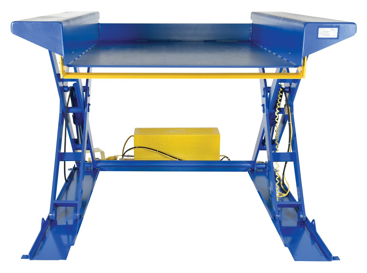 Steel Ground Lift Scissor Table 52 In. x 70 In. 4000 Lb. Capacity Blue