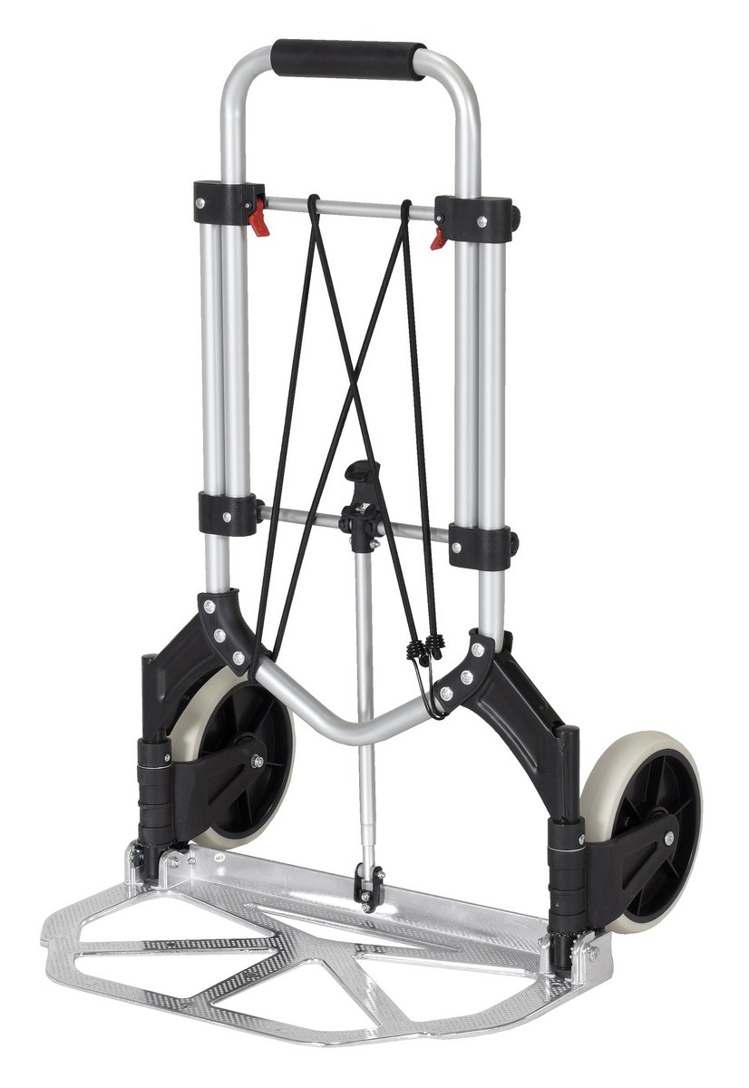 Aluminum Foldaway Hand Truck 275 Lb. Capacity SilverDesigned for everyday, all purpose use. The handle and wheels fold up quickly and easily allowing you to store it in tight spaces such as trunks of cars, under tables, or in closets.