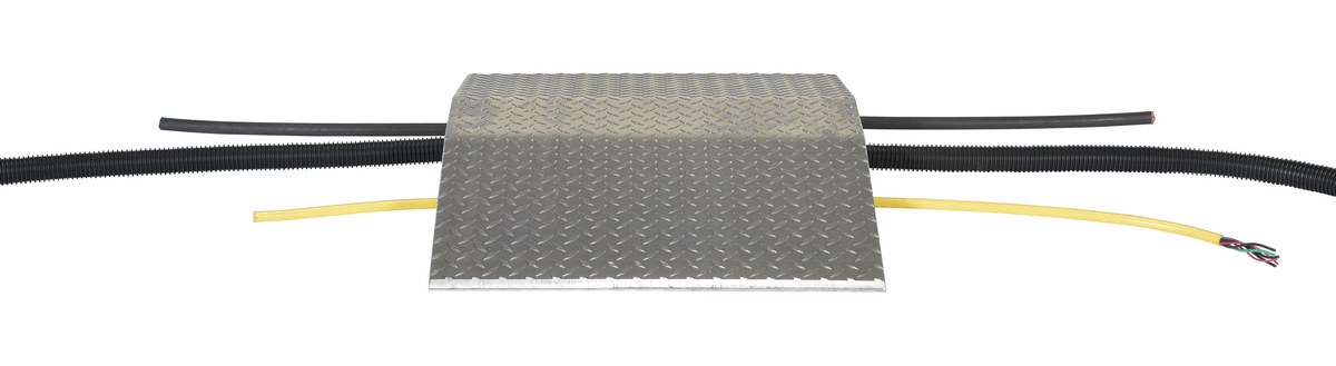 The fabricated Aluminum hose & cable Crossover protects hoses and cables from carts and other traffic. Constructed of lightweight durable aluminum tread plate. All welded.