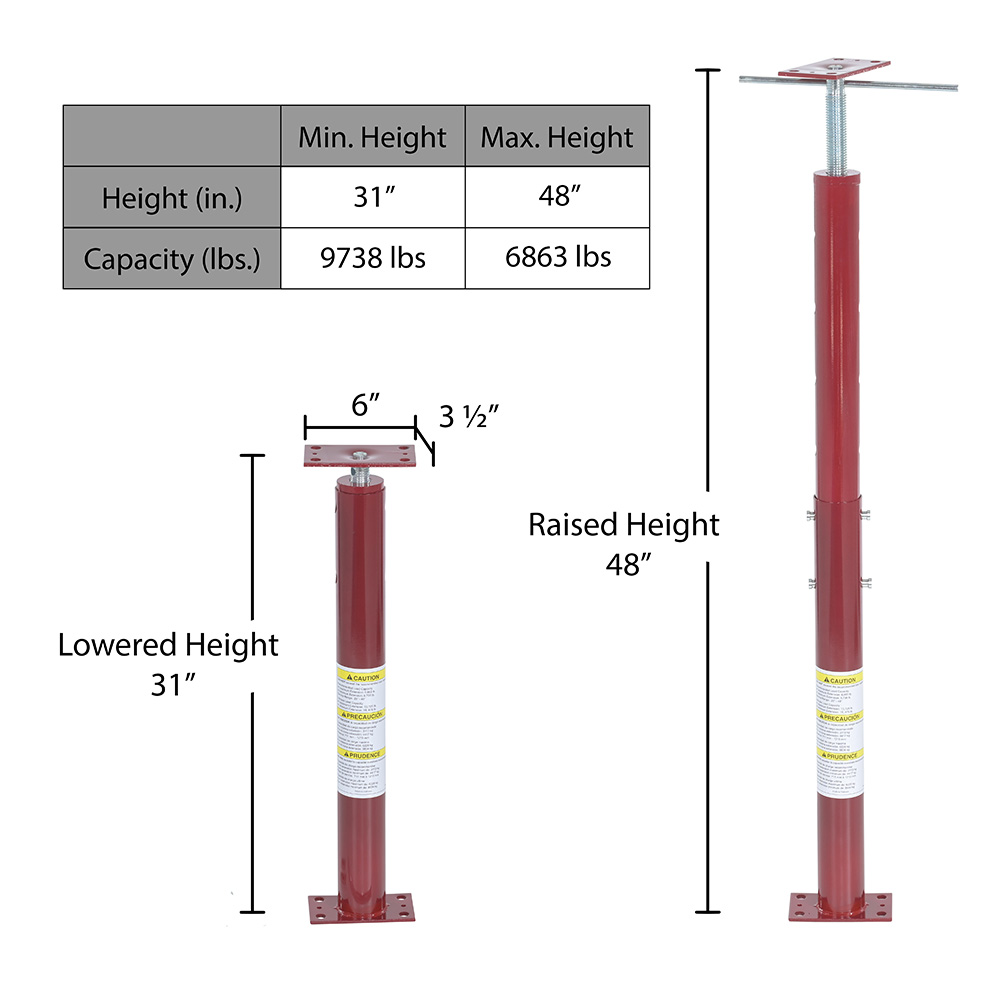 Height Minimum/Maximum (in.): 31 to 48 Minimum Height Capacity (lb.): 9738 Maximum Height Capacity (lb.): 6863