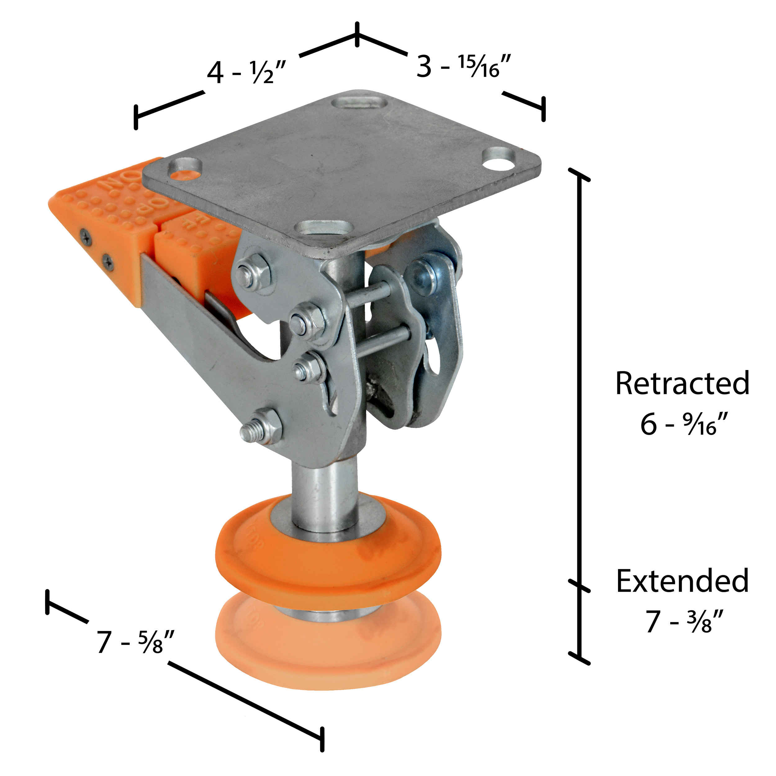 Lowered Height (in.): 6-9/16 Raised Height (in.): 7-5/8 Foot Pad Diameter (in.): 3-5/16