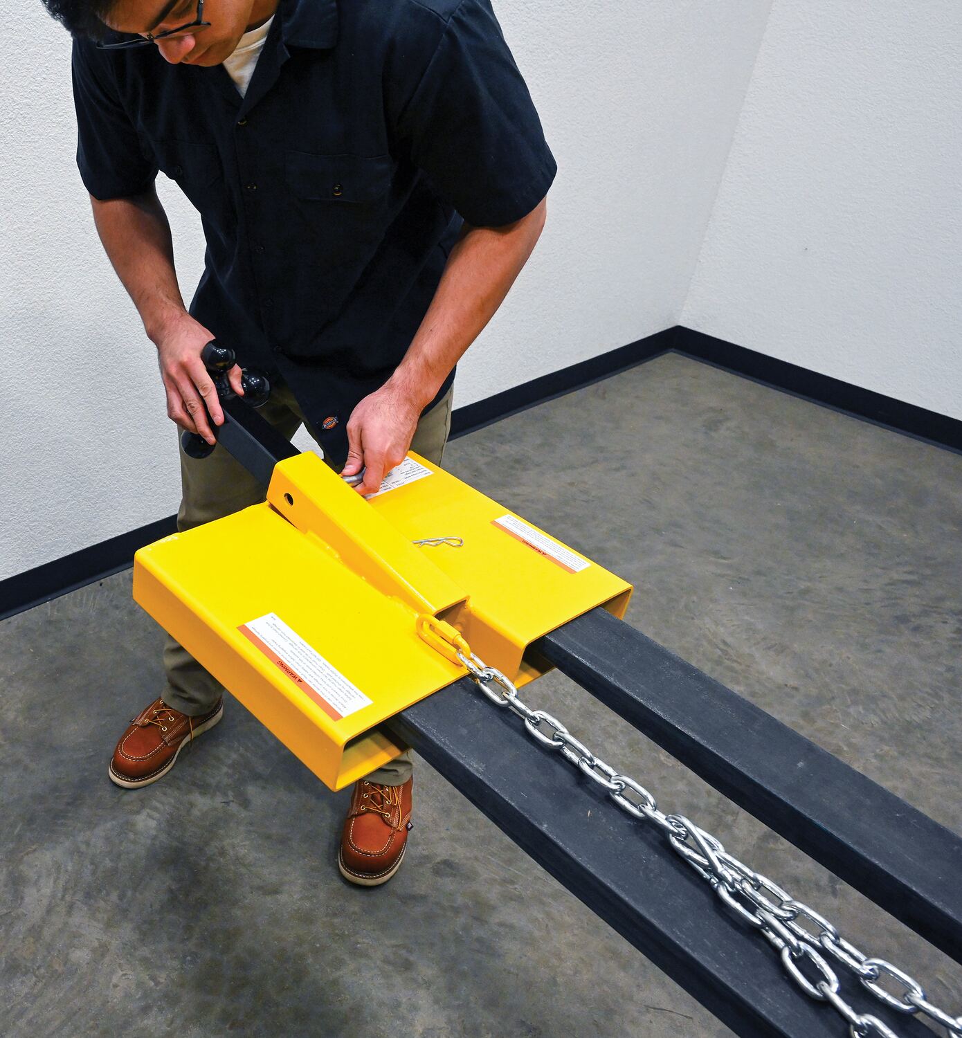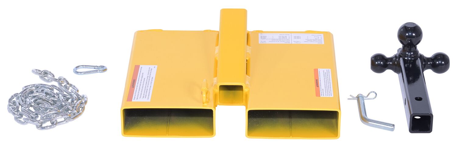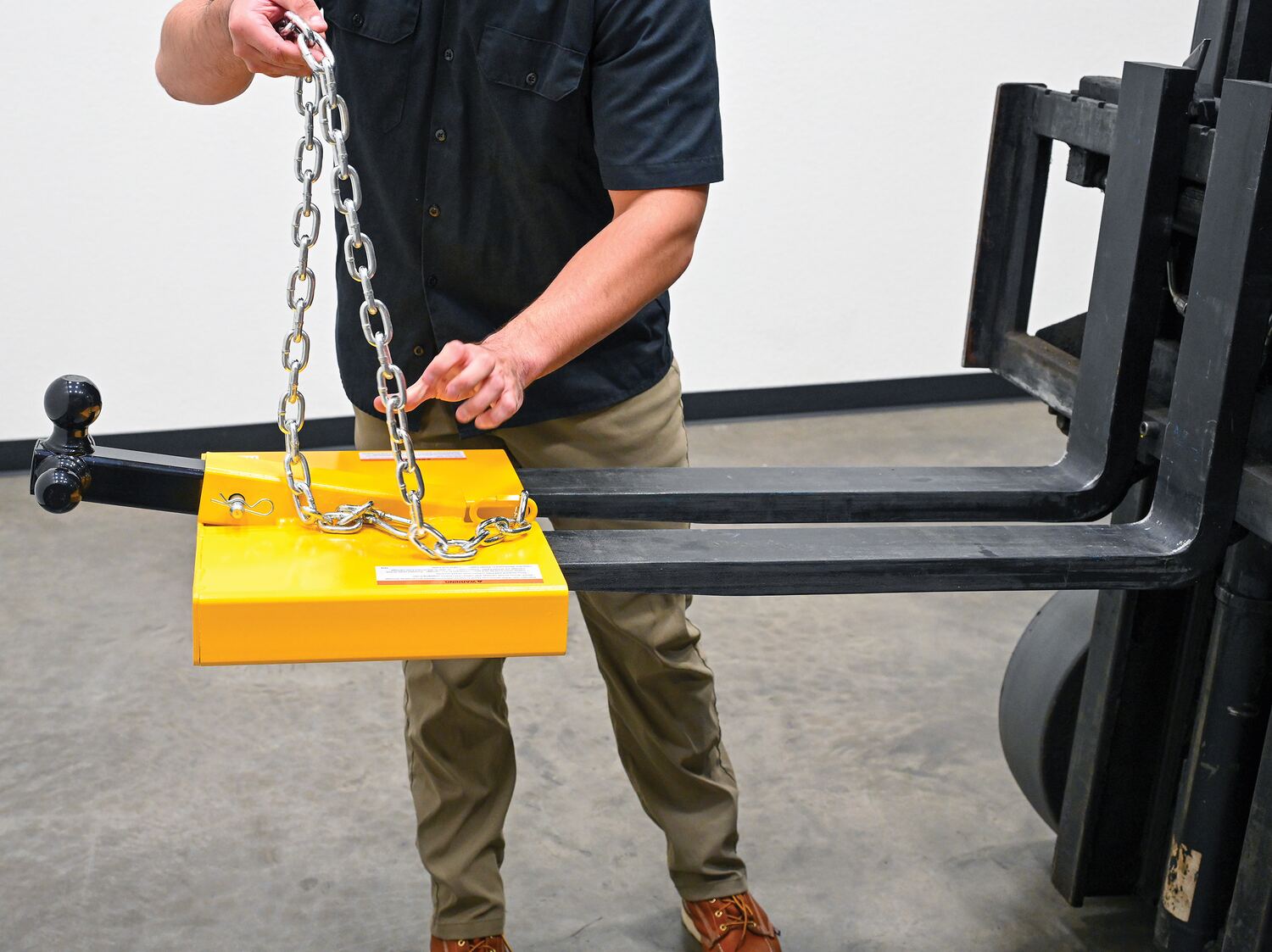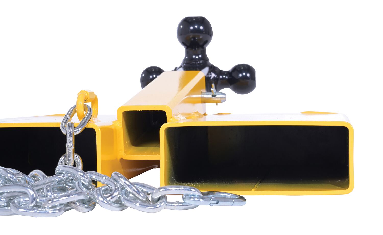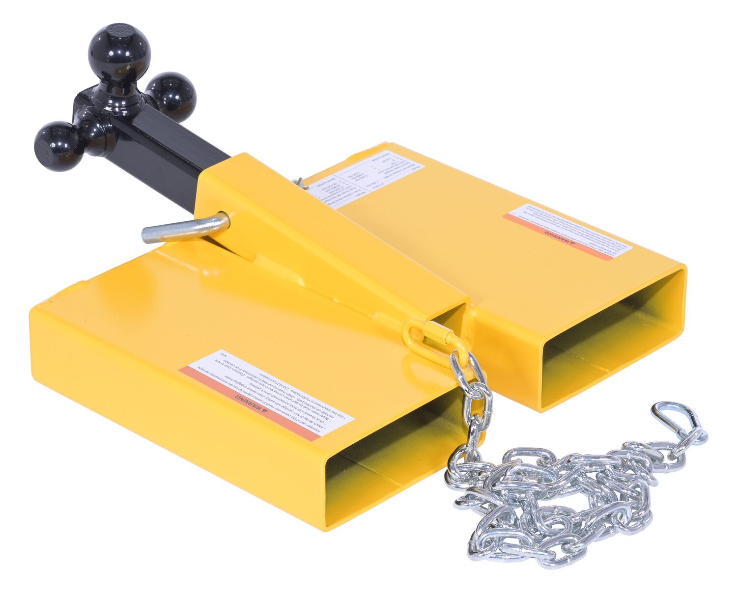 The fork lift hitch is a superb addition to the manufacturing and maintenance facilities. A strong steel construction allows for long term use, even in the harshest of conditions. The hitch includes a yellow finish for clear visibility. For best use, slide the forklift forks into the unit and secure safety chain to forklift. Once in place, the unit is ready to be hitched to the desired equipment.