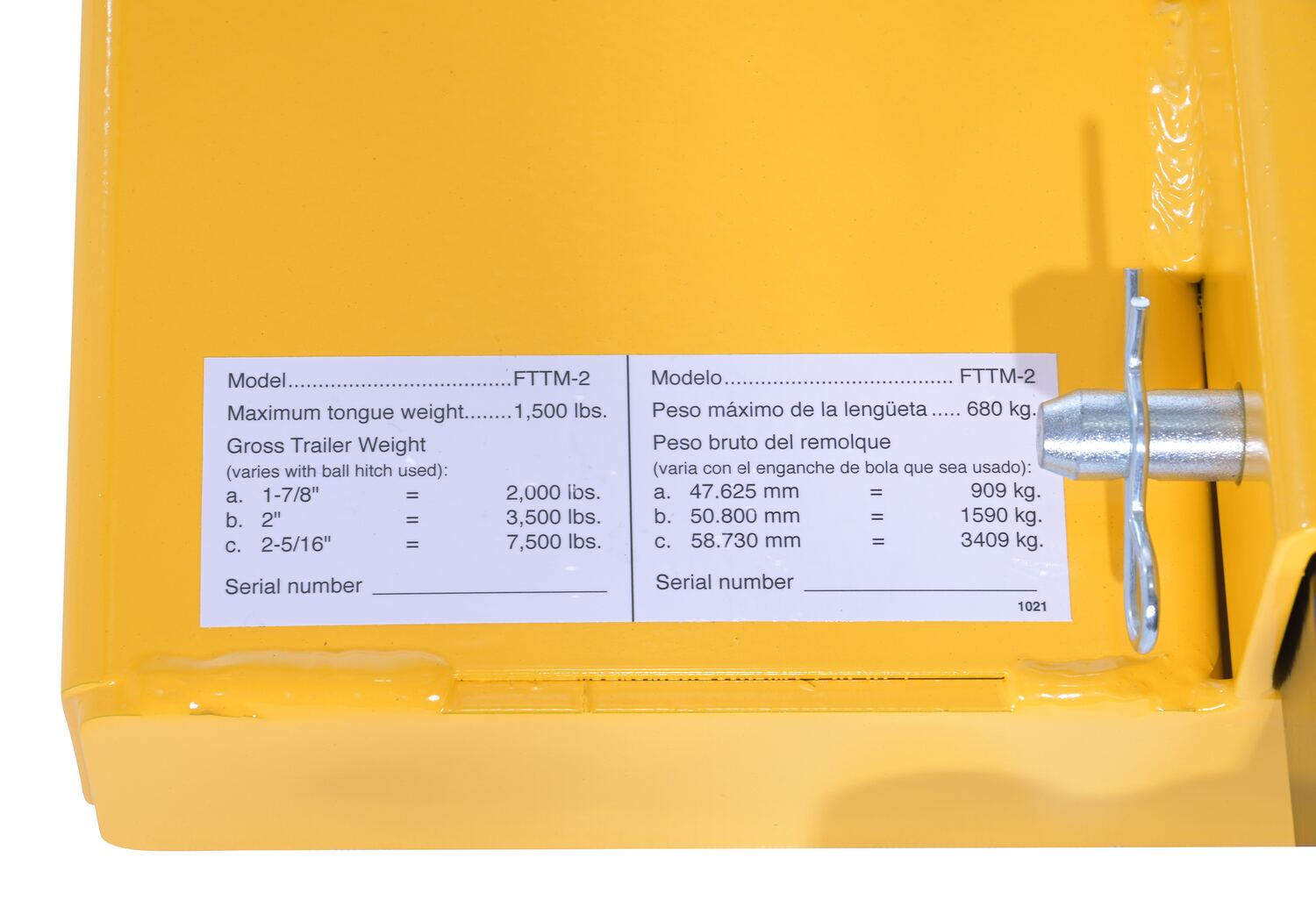 Maximum Tongue Load (lb.): 1,500 Usable Fork Pockets Width/Height (in.): 7-5/8 x 2-5/8 Chain Length (in.): 56