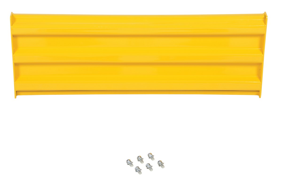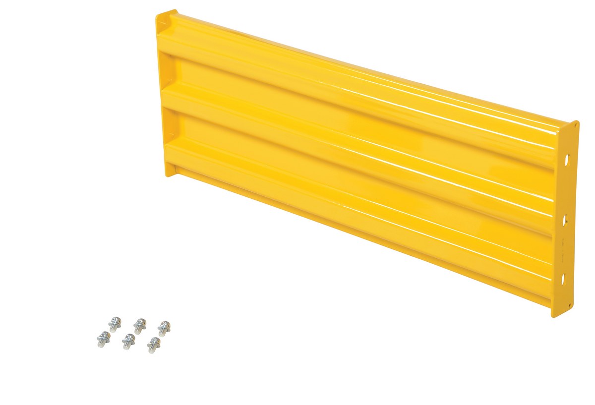 Steel 3 Ribbed Bolt On Style Guard Rail 29.875 In Length YellowProtecting equipment, inventory, and most importantly individuals from damage or injury is always a concern. But, with a structurally strong guard rail those worries can be eased. Rails have 3 ribs for impact resistance both indoors and out. A bolt-on style rail design allows the user to fasten the rails securely in place. Powder coated finish for built in added toughness. Additional posts are available and sold separately. If adding a rail to an existing rail and post section, only a single post is needed.