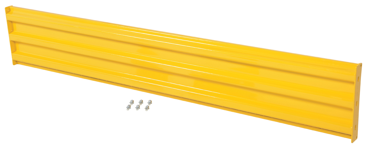 Steel 3 Ribbed Bolt On Style Guard Rail 77.875 In. Length YellowProtecting equipment, inventory, and most importantly individuals from damage or injury is always a concern. But, with a structurally strong guard rail those worries can be eased. Rails have 3 ribs for impact resistance both indoors and out. A bolt-on style rail design allows the user to fasten the rails securely in place. Powder coated finish for built in added toughness. Additional posts are available and sold separately. If adding a rail to an existing rail and post section, only a single post is needed.