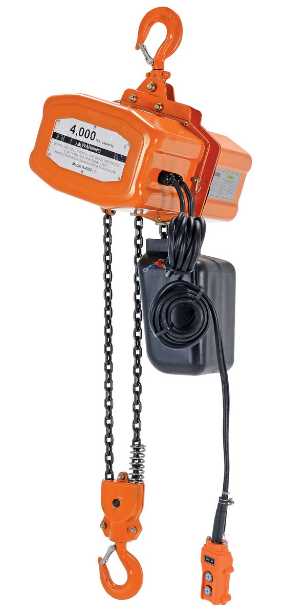 Steel Economy Chain Hoist with Chain Container 3 Phase 4000 Lb. Capacity Orange