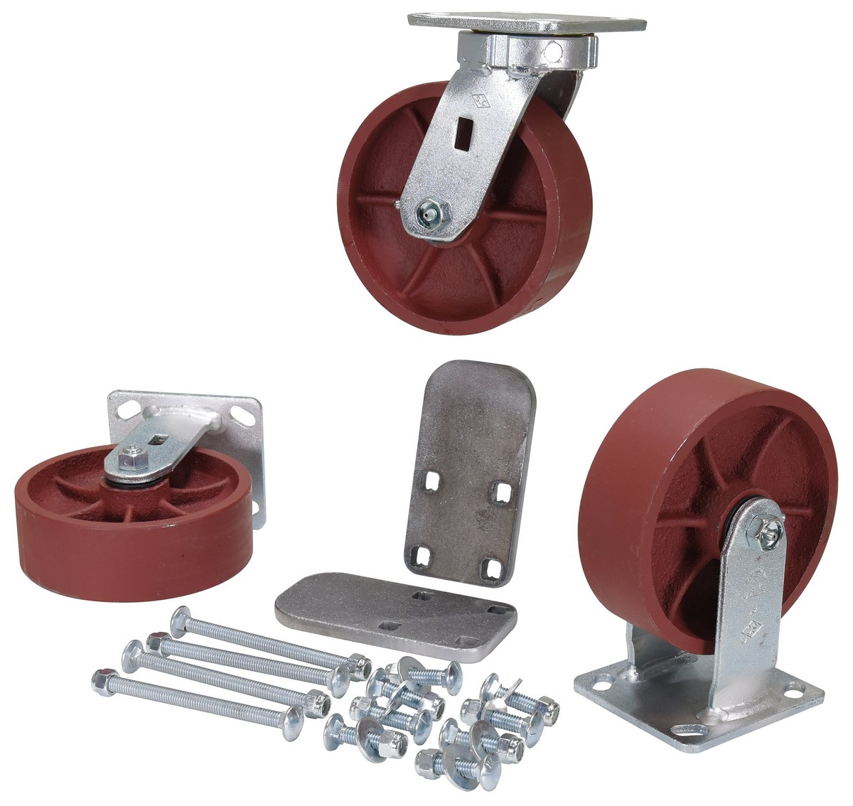 Ductile Steel Caster Kit 6 In. x 2 In. 6,000 Lb. Capacity Maroon