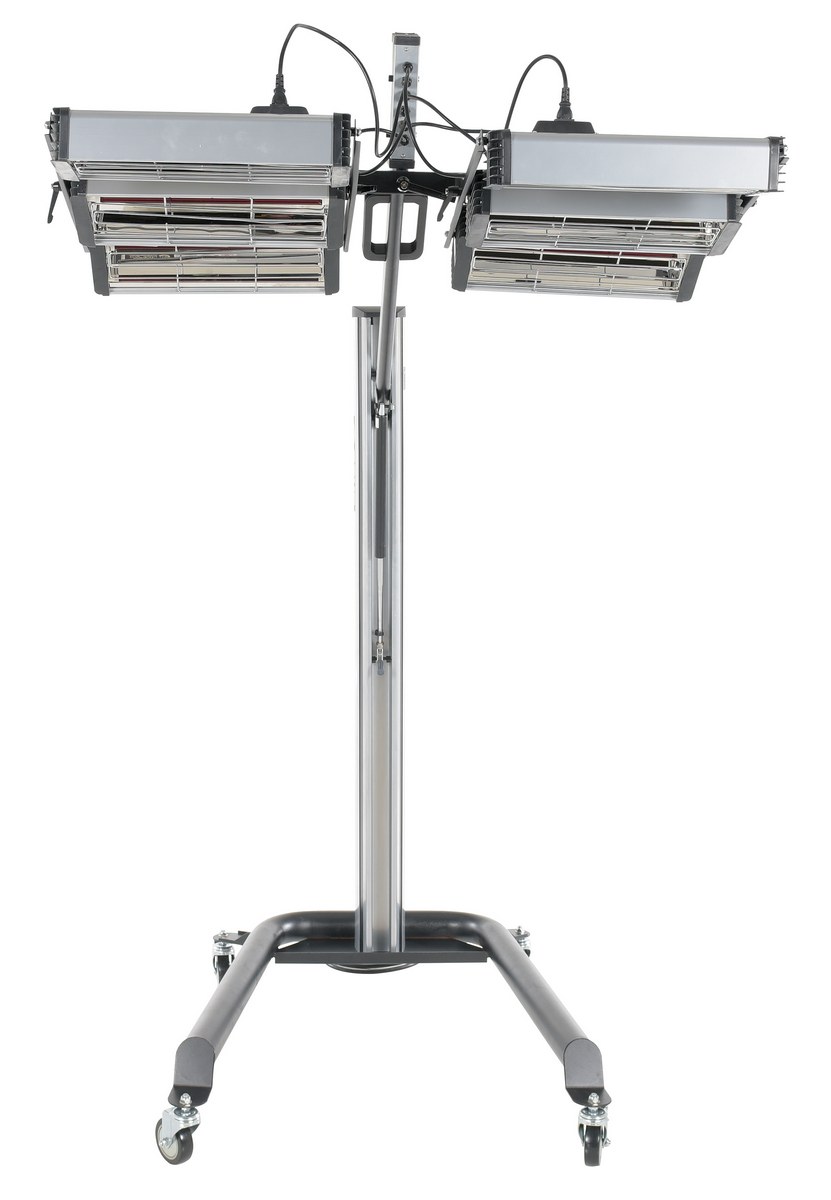 Steel Infrared Heater 6 Panel 230 Volt 1 Phase Black/SilverAn infrared heater provides beneficial warmth to a variety of industrial areas. A simple to use control panel allows the function and heat settings to be utilized in the best possible way for maximum efficiency. An adjustable heater arm gives the user the ability to maneuver the heating elements into a position that best fits the type of surface that is being heated. Unit includes casters to easily maneuver the unit to and around the work area. A robust structural construction endures work place conditions that are continually changing.