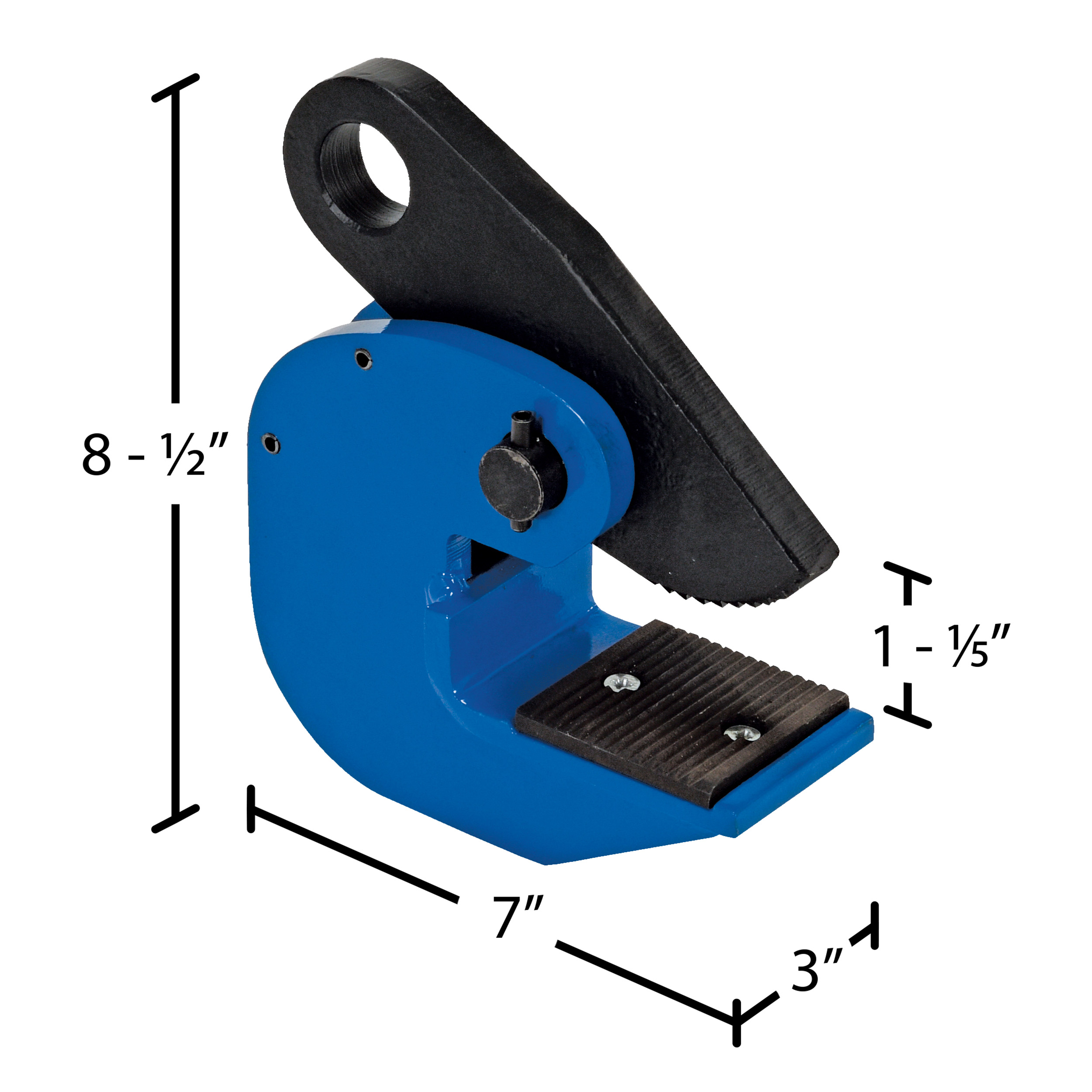 Clamp is perfectly designed for lifting plate material in horizontal positions. The heavy-duty steel construction provides years of reliable use. Not designed for use on stainless steel or aluminum plates.