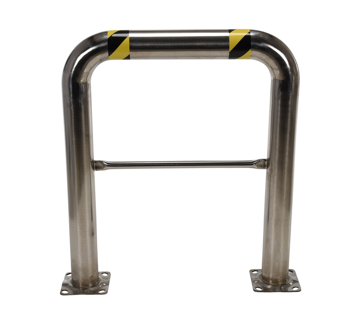 This High Profile machinery guard is heavy-duty welded steel construction for protecting racks, building walls, expensive equipment, and hundreds of other applications. Unit includes a mid-rail to comply with OSHA requirements. Stainless steel polished finish. Two (2) base plates with four (4) pre-drilled mounting holes in each plate.