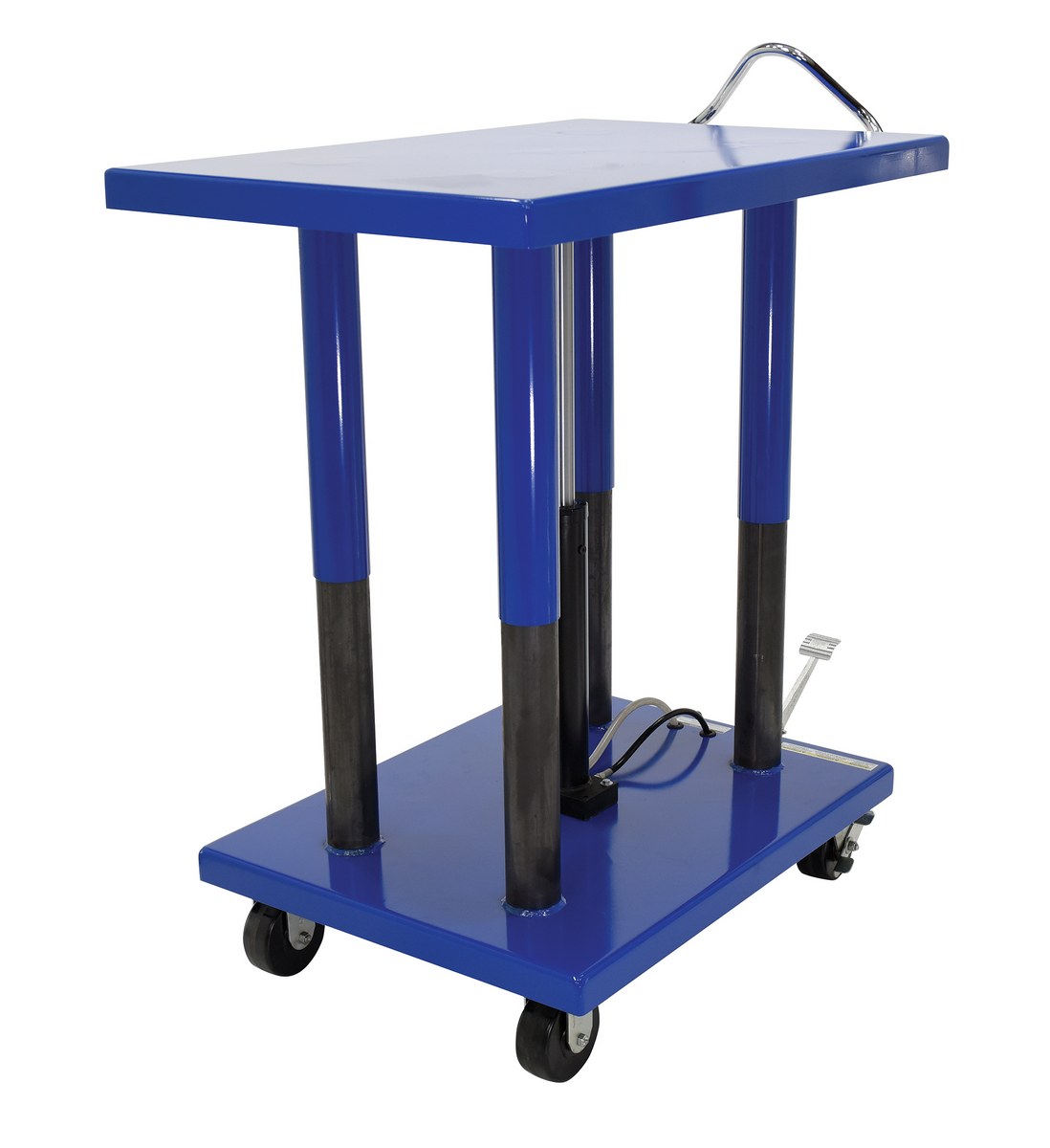 The Hydraulic post table is built for heavy-duty shop use. This post table is good for many material handling uses including: lifting dies and castings, moving machine parts, positioning welders work, leveling feed material for pump presses, conveyors and press brakes, and similar material handling jobs. The posts are telescoping to help stabilize and support loads during operation. Table includes four casters; two locking swivel with brakes and two rigid. The unit features a two-speed auto shifter for maximum operator convenience and safe platform lowering.