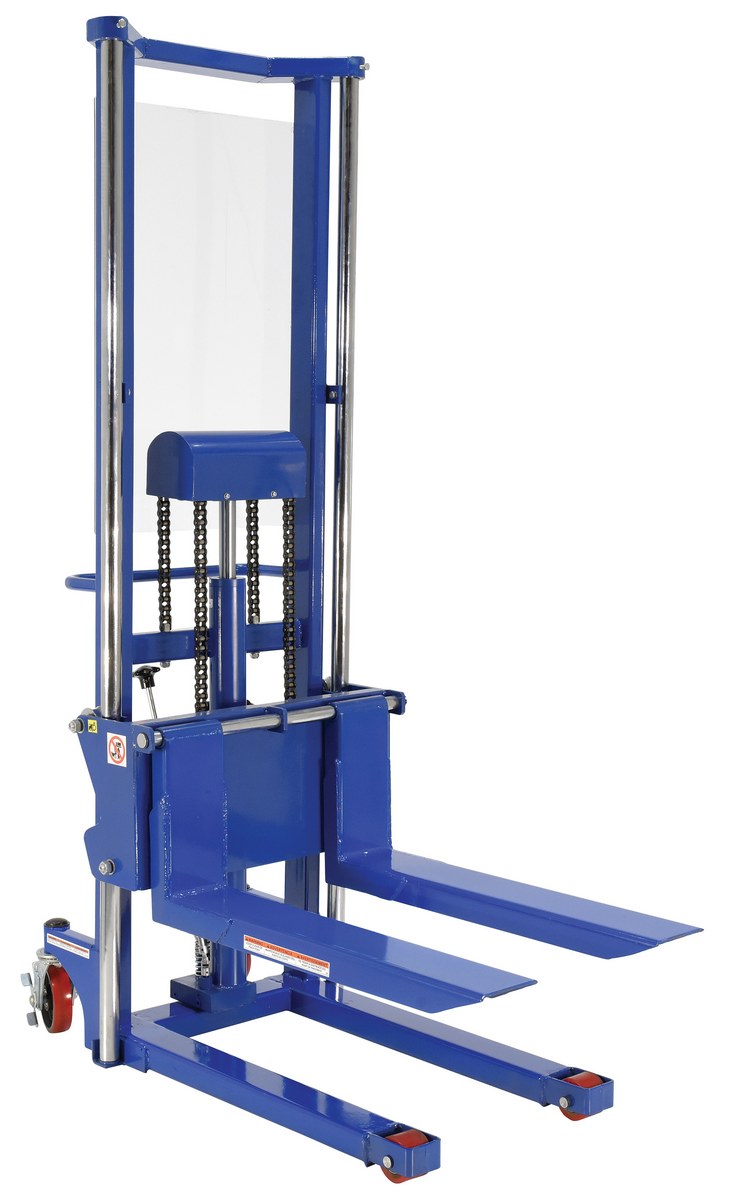 Steel Portable Foot Pump Hefti-Lift 51 In. x 79-3/8 In. 1500 Lb. Capacity BlueThe Hefti-Lift is a user friendly, portable hydraulic lift. The lift provides reliable, power lifting when moving and positioning loads. The non-slip chain is used for accurate positioning while the unit rolls easily on two rigid and two swivel poly-on-steel casters that includes a foot operated brake. The lift is all welded construction with a chrome platform and uprights. Not for use with pallets.