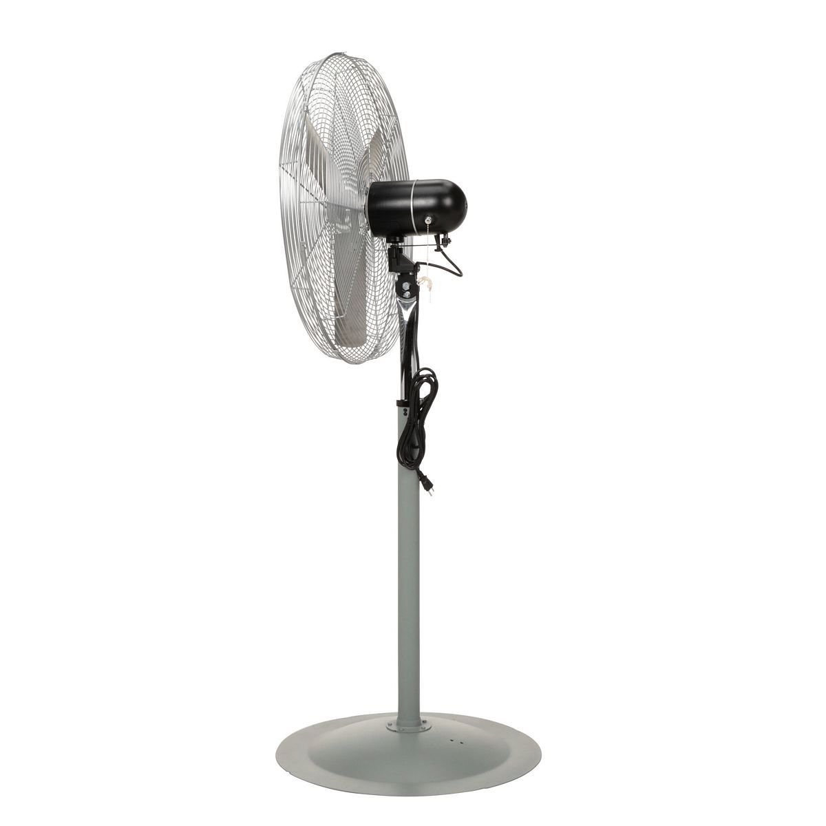 Steel Oscillating Pedestal Circulatory Fan 94-3/4 In. Height SilverThe oscillating two speed, ball bearing, industrial duty circulatory fan is totally enclosed and permanently lubricated. Pull chain switch.