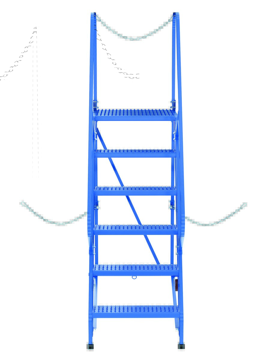 Steel Semi-Trailer Access Ladder 58 Degree 6 Grip Strut 24 In. Step Width 350 Lb. Capacity BlueThe semi-trailer access ladder is a great addition to material handling and shipping facilities. The steel construction maintains a strong, durable design throughout a lifetime of use. The steps include a unique design that promotes stability while climbing and/or descending the ladder.