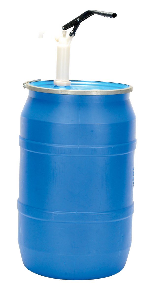 This manual drum pump is designed for dispensing and transferring liquids out of fifty-five (55) gallon drum. This pump with lever action is constructed of PTFE with a stainless steel piston rod.