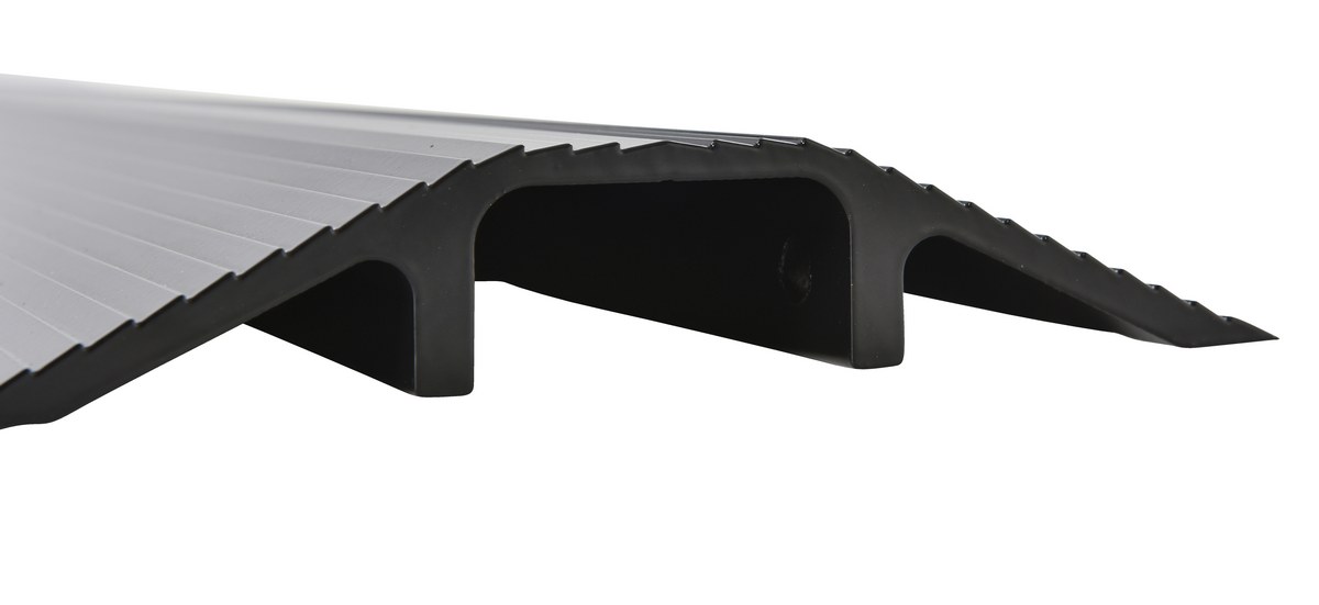Aluminum Hose and Cable Crossover 36 In. Length 10,000 Lb. Capacity BlackThe Extruded Aluminum hose and cable Crossover is designed to protect air lines, electrical cords and computer cables from damage by fork trucks, carts, and personnel. This ramp has serrated edges for maximum traction and are lightweight for easy portability.
