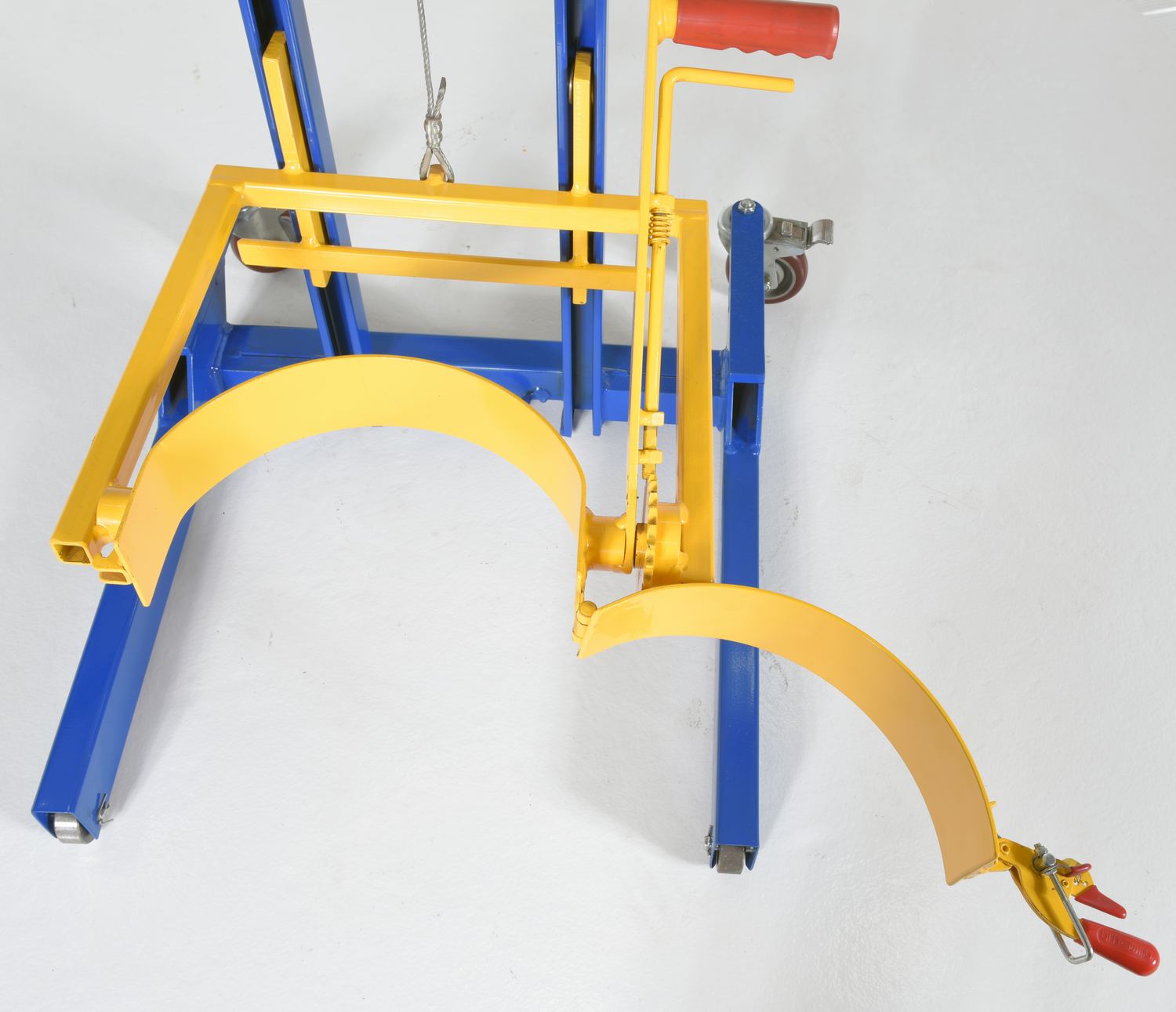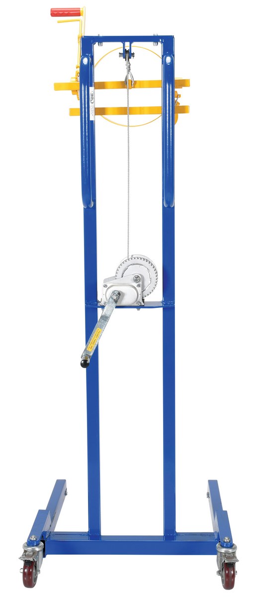 Variable height pail dispenser provides several settings for dispensing five (5) gallon plastic or steel pails. Dispense by turning the hand cable winch. Steel construction with a baked-in powder-coated toughness.