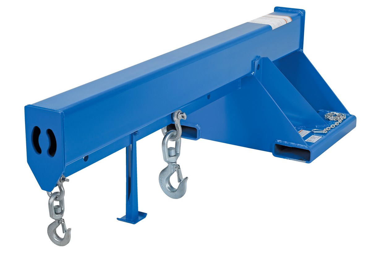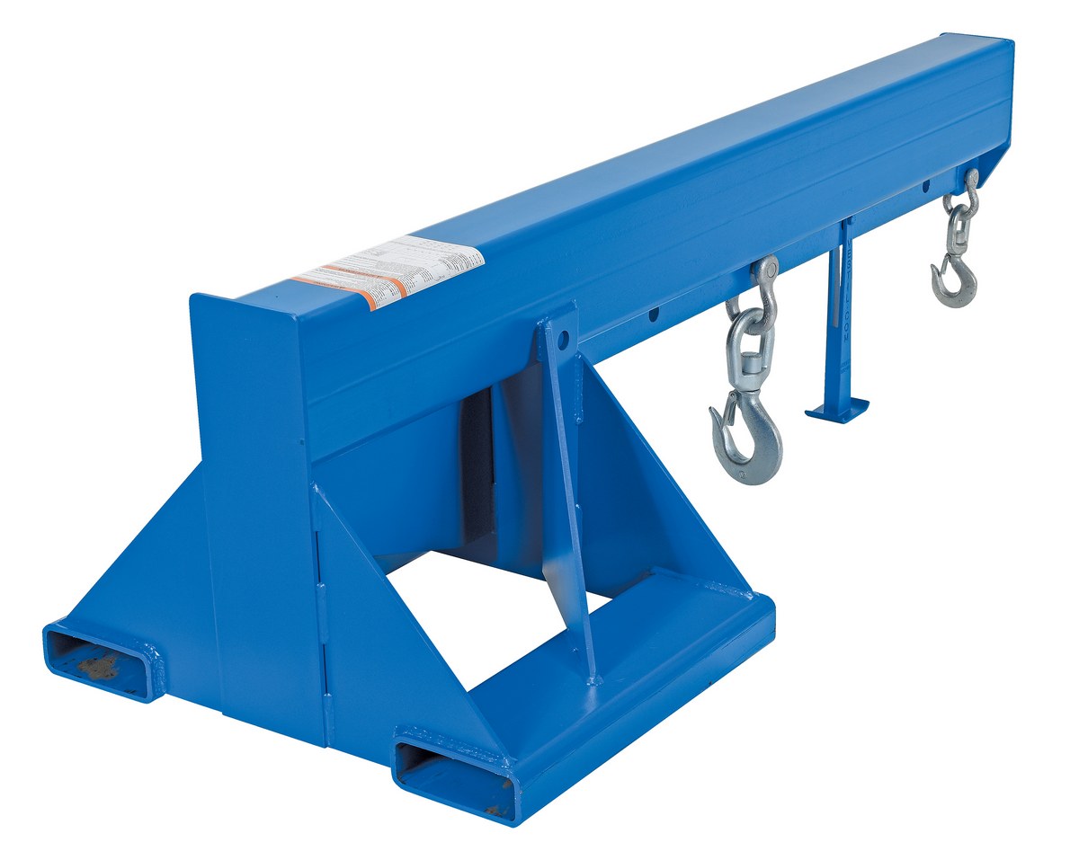 Unique performance, convenience, and safety features are built into every lift master boom. Fabricated from structural steel with welding to meet AWS creates a rugged and durable boom that will provide long term service. A safety restraint secures the boom to the fork truck for safe operation. Includes two (2) lifting hooks.