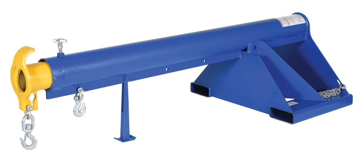 Unique performance, convenience, and safety features are built into every lift master boom. Fabricated from structural steel with welding to meet AWS creates a rugged and durable boom that will provide long term service. This unit come with an infinitely adjustable locking screw. A safety restraint secures the boom to the fork truck for safe operation. Includes two (2) lifting hooks.