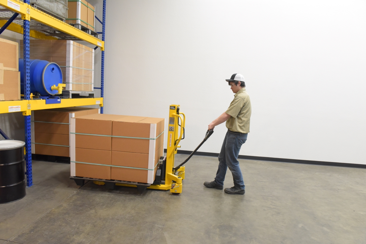 A lift and tilt pallet truck is an outstanding addition to a variety of production environments. The hand pump lever functionality gives the user control over the precise height movements of the forks. With a wide service range, items both large and small can be loaded and unloaded at a height that best fits the users preference. For items that may need added stability, the tilting function is available. The tilting function can be used up to 20 degrees tilt for extra steadiness. Steel construction with a powder coat finish for added baked in toughness. For use with open bottom pallets and skids only.