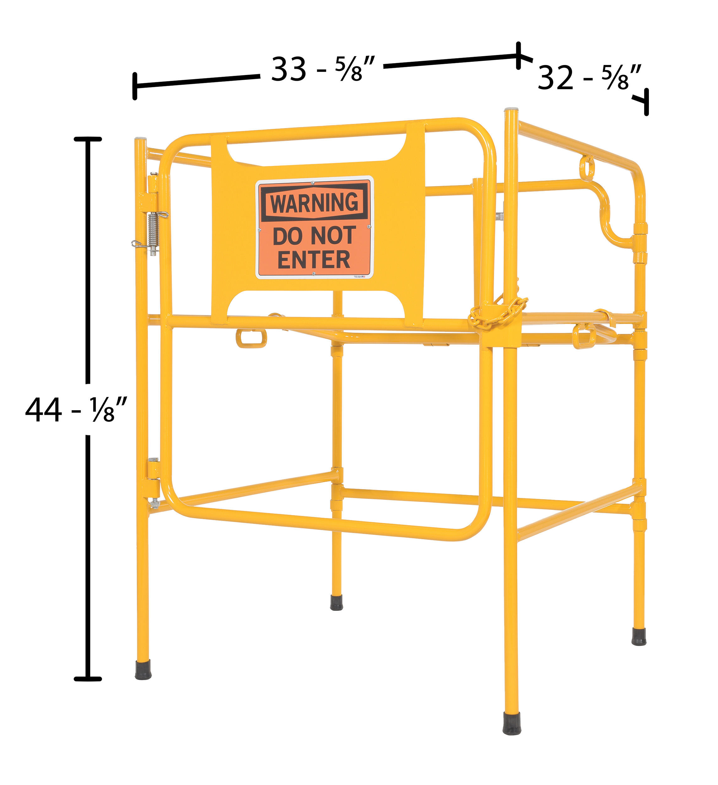 Steel Manhole Guard Rail with Aluminum Sign 31 In. x 30 In. Warning Do Not Enter Sign Message YellowThe manhole guard rail with Aluminum sign is perfect for utility maintenance and city officials. The simple set up and take down promotes quick use when on the go and a compact storage when not in use. High rails and an attaching chain limit access and promote safety to the worker in the enclosed area. A brightly colored high strength construction makes the unit highly visible, giving caution to pedestrians and other workers to keep their distance.