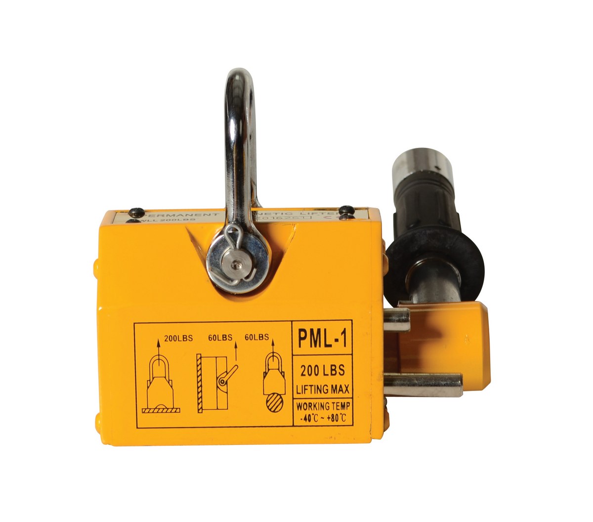 Steel and Neodymium Magnetic Lifter 5-15/16 In. x 6-3/4 In. x 4-29/32 In. 200 Lb. Capacity Yellow