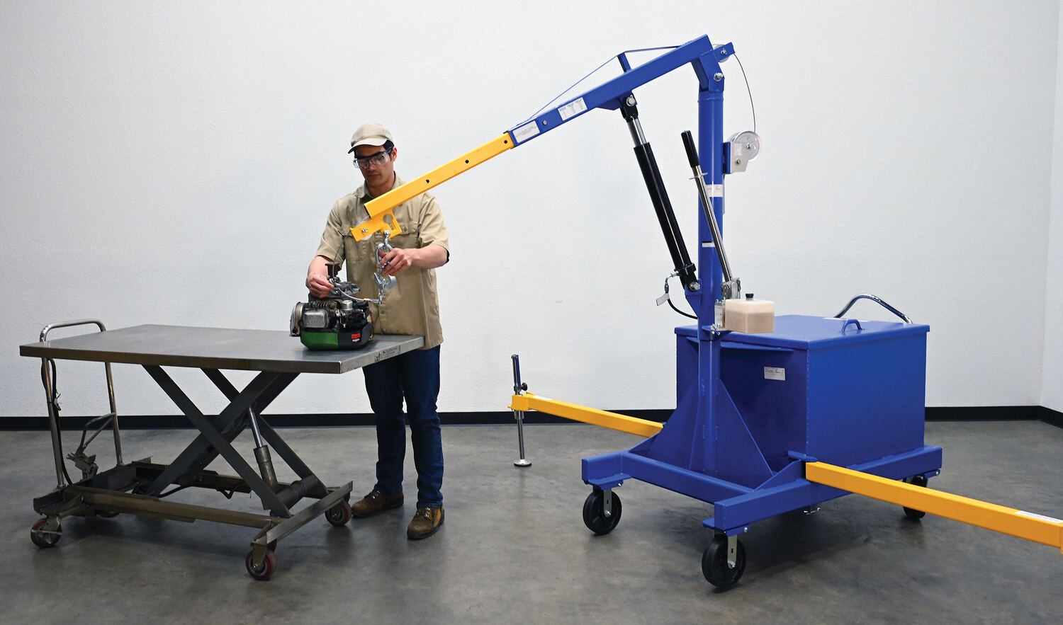 The portable Cantilever hoist is built for heavy lifting. The swivel crane makes for simple side loading and controlled lowering. Maximum arm length beyond the frame is 50-3/8". Unit is available with or without counter balancing ballast. Painted finish.